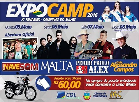 Numa noite de pura ansiedade o publico conheceu os três shows que vão se apresentar no palco principal do evento. Banda Malta, PPA e Padre Alexandre Campos serão as principais atrações da EXPOCAM 2016 – XI FENAMEX, que acontece de cinco a oito de maio de 2016.